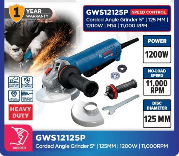 Pulidora Bosch Gws12-125P. 1200 wts. Disco de 5″. Suiche de paleta